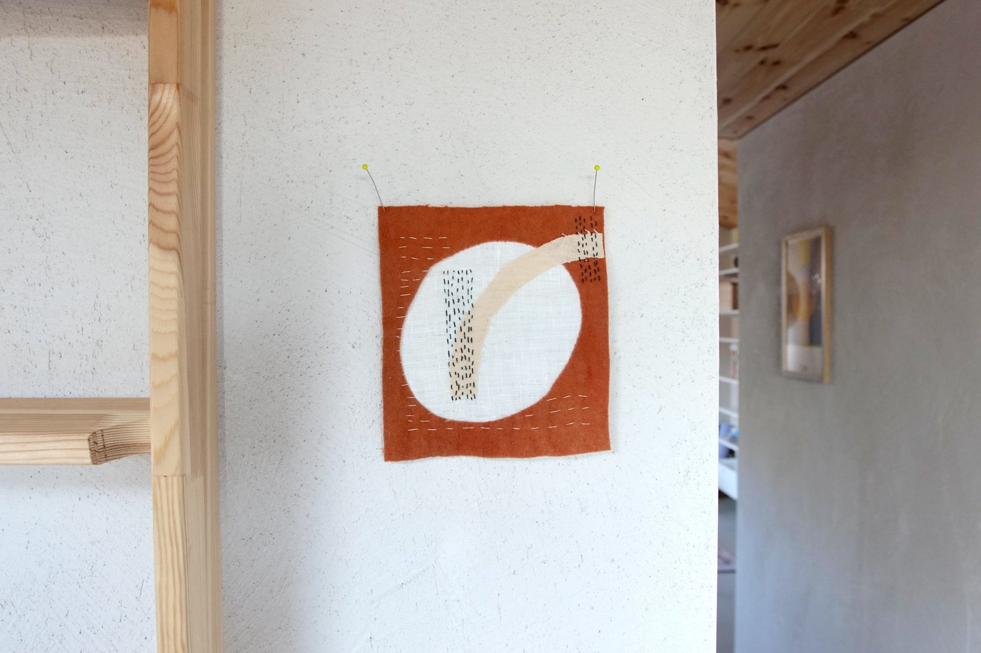 Eucalyptus dyed wool and linen hand-cut and hand-stitched onto undyed white linen.